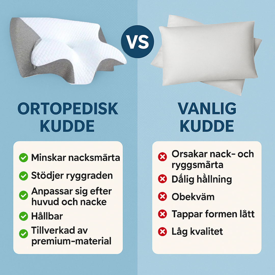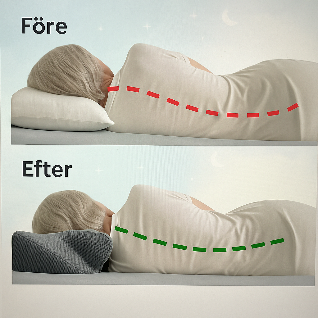 Vanliga kuddar snedvrider ryggen och skapar stelhet. KOMFORT PRO håller din nacke i perfekt linje för bättre hållning och djupare sömn.